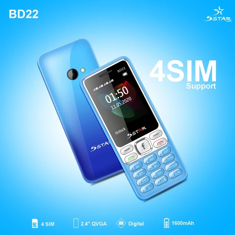 The latest price of the 5 Star BD22 4-SIM Feature Phone in Bangladesh is ৳1,450. You can buy the 5 Star BD22 in Bangladesh at the best price from Unicart.