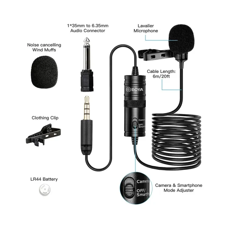 The Boya BY-M1 is the perfect choice for anyone in need of a high-quality omnidirectional lavalier microphone. Whether you're vlogging, podcasting, presenting, or live streaming, this microphone provides reliable, clear audio for all your recording needs. With its long cable, versatile compatibility, and easy mode switching, the Boya BY-M1 ensures your recordings sound professional and accurate.