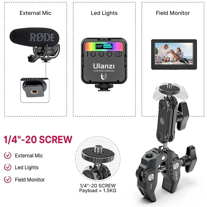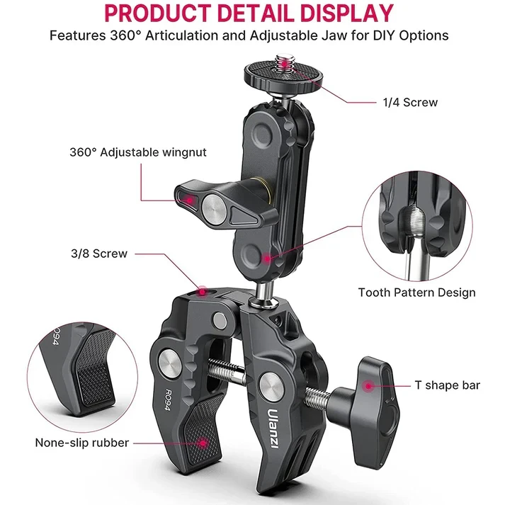 Features of the Ulanzi R094 Multi-Functional Super Clamp: